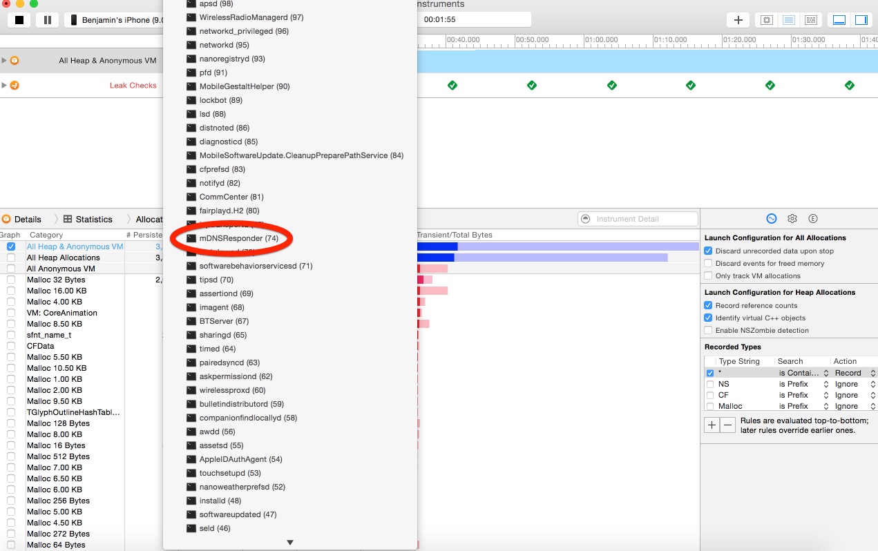 When OS X 10.10.4 betas dropped discoveryd a couple of weeks ago before iOS 9 and OS X 10.11 were announced, there was some speculation about whether it was just a temporary intermediate fix until Apple reworks discoveryd for the next generation operating systems. Using Xcode’s Instruments developer tools for iOS and Activity Monitor on the Mac, we can confirm that Apple has also dropped discoveryd on iOS 9 and OS X 10.11 El Capitan.