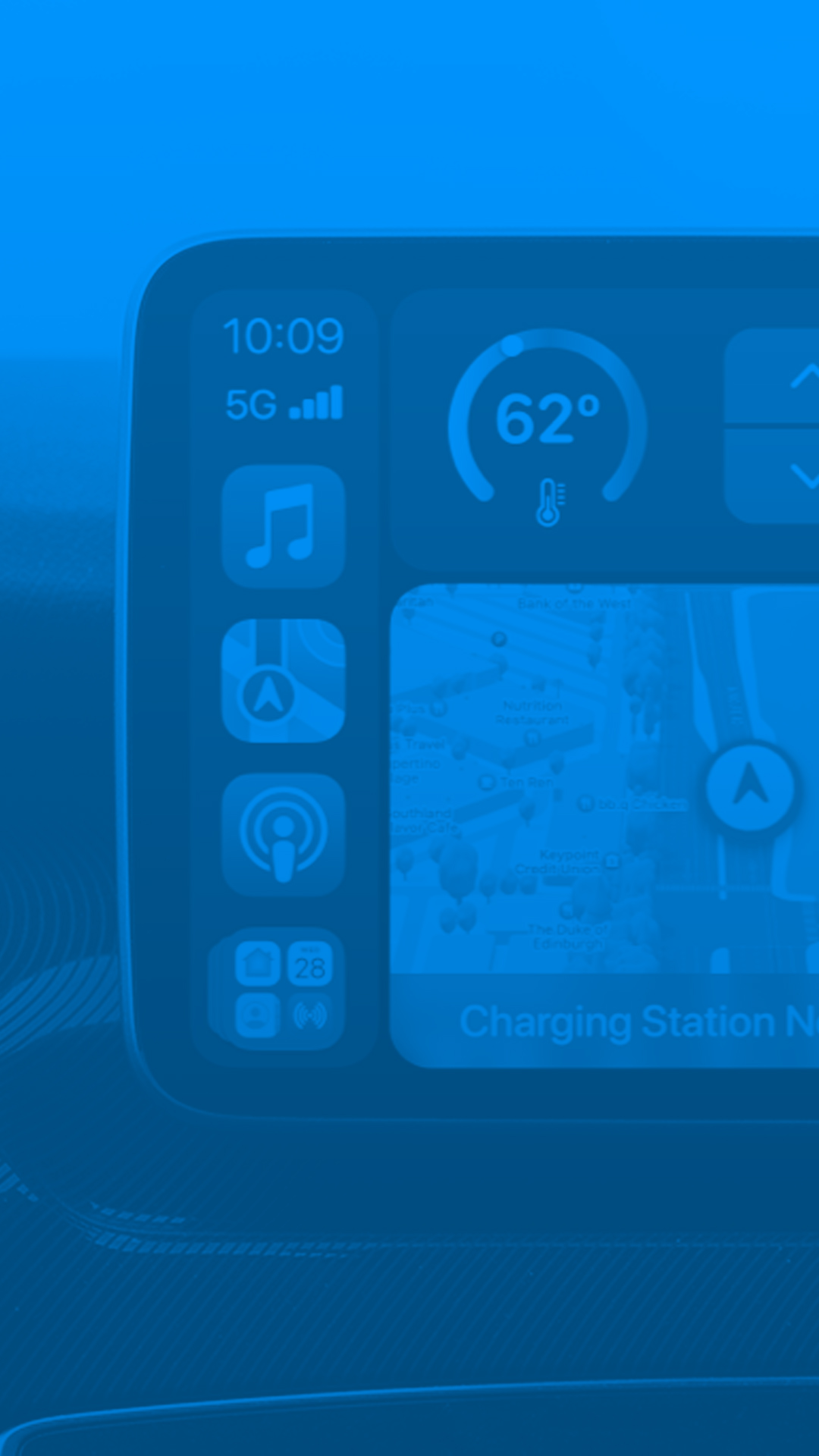 Since CarPlay can present information about your car’s charge, it could also notify you of a low battery. It could show a large fullscreen notification with the existing battery and how many miles you have left. CarPlay can offer the driver two large buttons. One for searching for a charger in Maps and starting an immediate route navigation or to call emergency services for help if you’re in a bind.